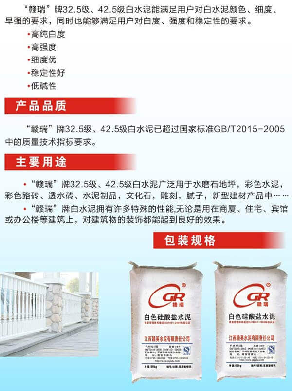 “贛瑞”牌32.5級、42.5級白水泥