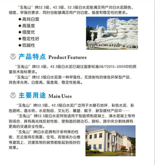 “玉兔山”牌32.5級、42.5級、52.5級白水泥