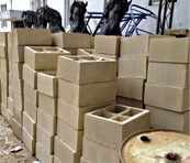 在混凝土工廠中,半干澆產(chǎn)品在模具中壓實或通過夯實設(shè)備成型或用壓力振搗。新澆的混凝土形態(tài)穩(wěn)定后,馬上可以脫模,然后在受控的環(huán)境中固化。用貨盤裝運儲存并出售。